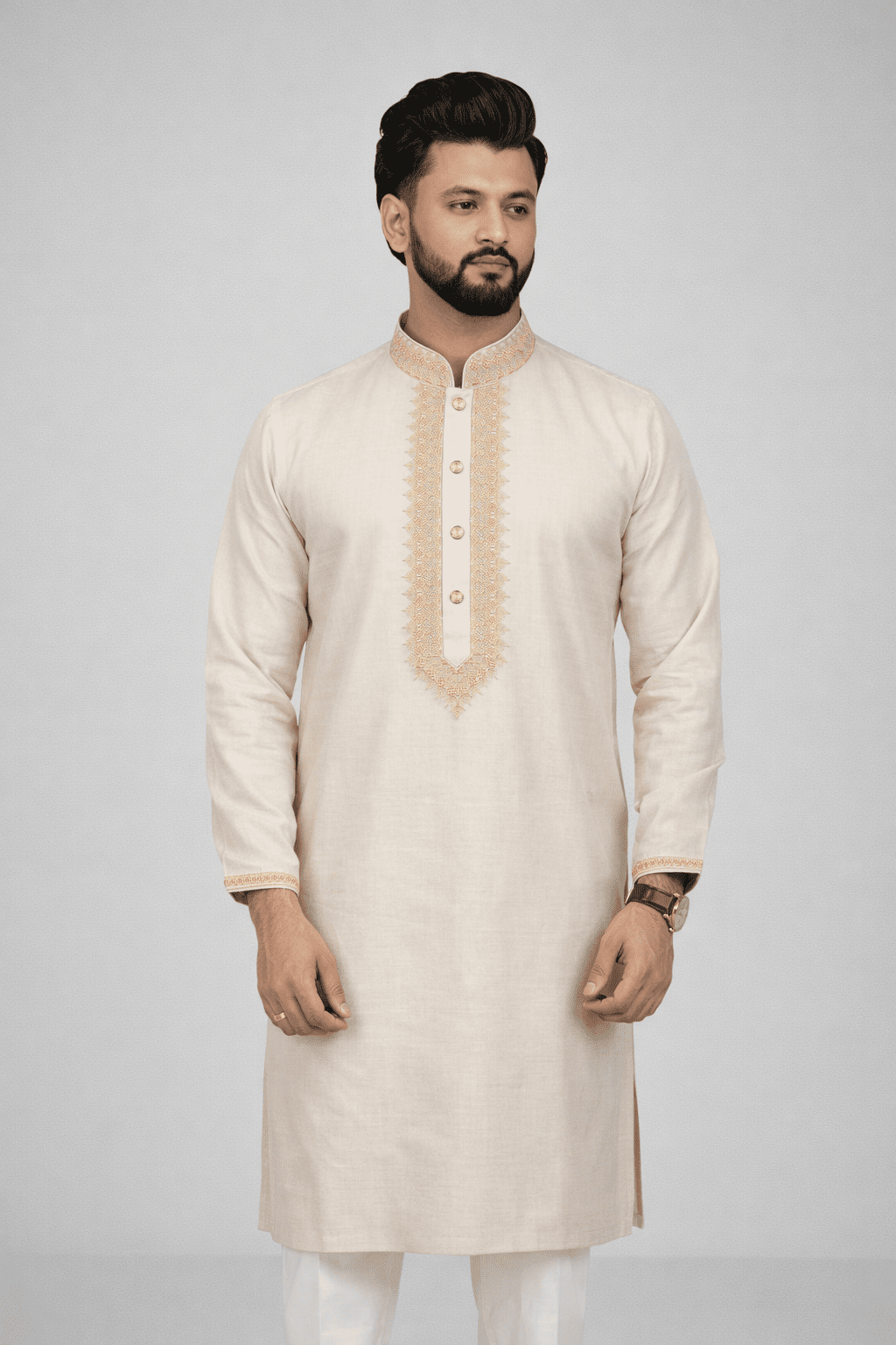 Color- Ivory Gold mist Embroidery- Machine Nakshi Embroidery Comfort: Soft , Breathable. Summer friendly.
