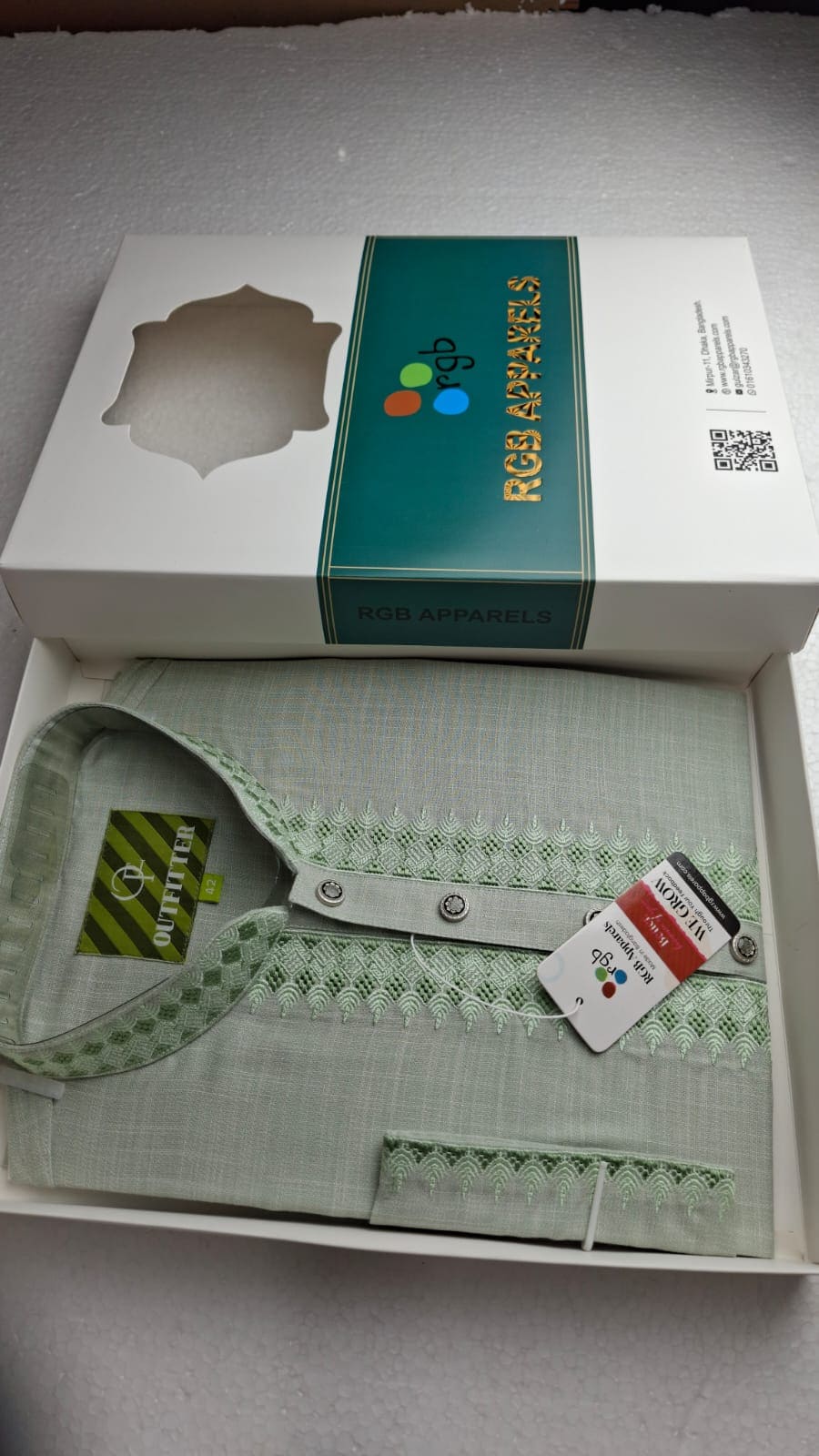 Chamak Heirloom Panjabi- Mint ash gray