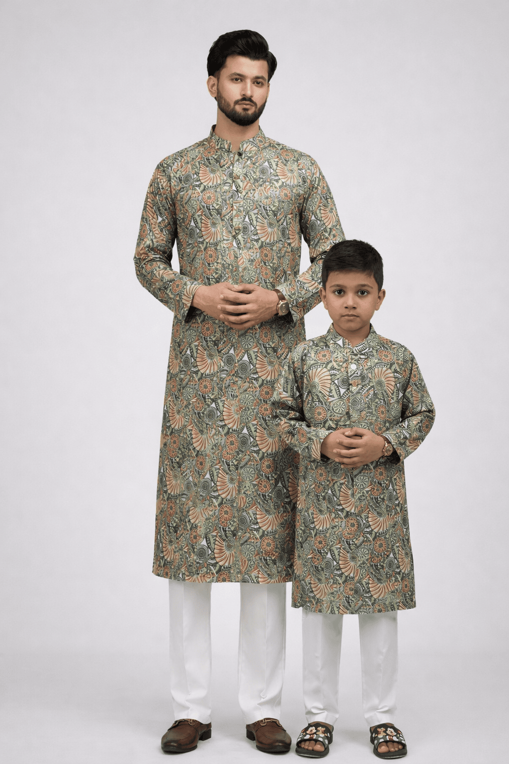 Men’s Premium Printed Panjabi (Ethnic Collection)-Olive Green & Beige Multi-Tone